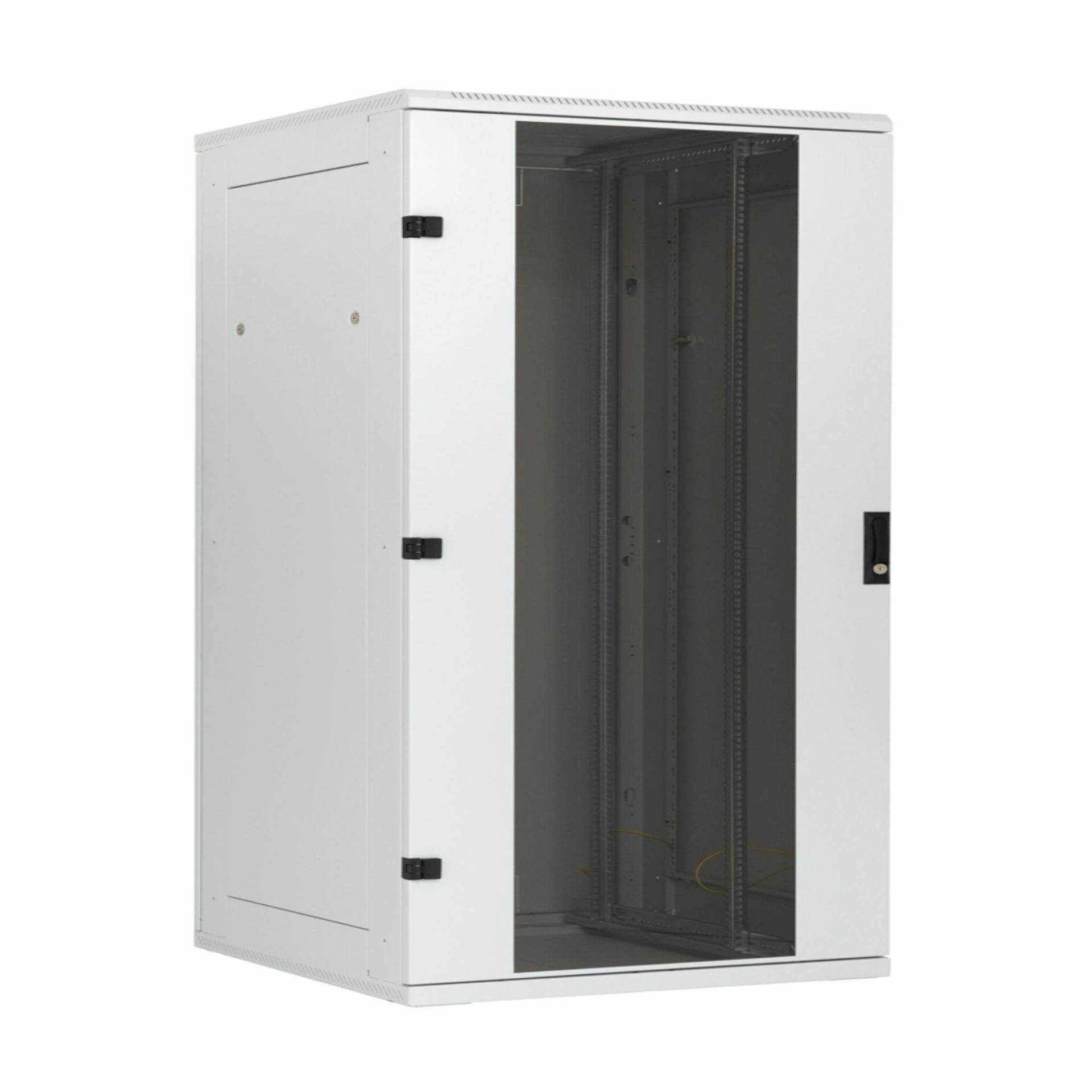 Triton komunikacijska omara samostoječa, dimenzije 600x600 mm 27U, serije RMA je zasnovan robustno saj ima vodila izdelana iz 1,3 mm debelega materiala. Ima varjeno ogrodje z odstranljivimi stranskimi paneli in vrata s 4 mm debelim kaljenim varnostnim steklom, ki se odpirajo za skoraj 180°. Kabinet je namenjen namestitvi podatkovnih in telekomunikacijskih naprav ter njihovih distribucijskih sistemov. Kabelske odprtine se nahajajo na zgornjem in spodnjem delu kabineta, kar omogoča urejeno vodenje kablov. Na dnu je vijak za osrednjo ozemljitveno točko.