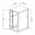 Triton komunikacijska omara samostoječa, dimenzije 600x800 mm 42U, serije RMA je zasnovan robustno saj ima vodila izdelana iz 1,3 mm debelega materiala. Ima varjeno ogrodje z odstranljivimi stranskimi paneli in vrata s 4 mm debelim kaljenim varnostnim steklom, ki se odpirajo za skoraj 180°. Kabinet je namenjen namestitvi podatkovnih in telekomunikacijskih naprav ter njihovih distribucijskih sistemov. Kabelske odprtine se nahajajo na zgornjem in spodnjem delu kabineta, kar omogoča urejeno vodenje kablov. Na dnu je vijak za osrednjo ozemljitveno točko.