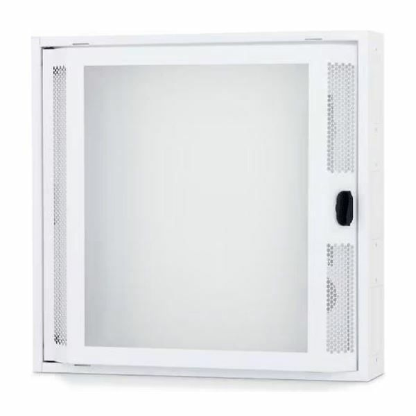 Triton RNA hibridni kabinet 500 x 500 x 110 mm z izbočenimi vrati je zasnovan za izvedbo vseh domačih kabelskih distribucij in namestitve aktivnih elementov. Triton omara ima vhode za kable na vrhu, dnu in straneh, kar omogoča enostavno povezovanje z drugimi omarami iz iste serije, tudi z omarami za električno distribucijo. Perforacija na straneh pomaga pri hlajenju nameščenih aktivnih elementov. Kabinet je primeren za montažo na steno.