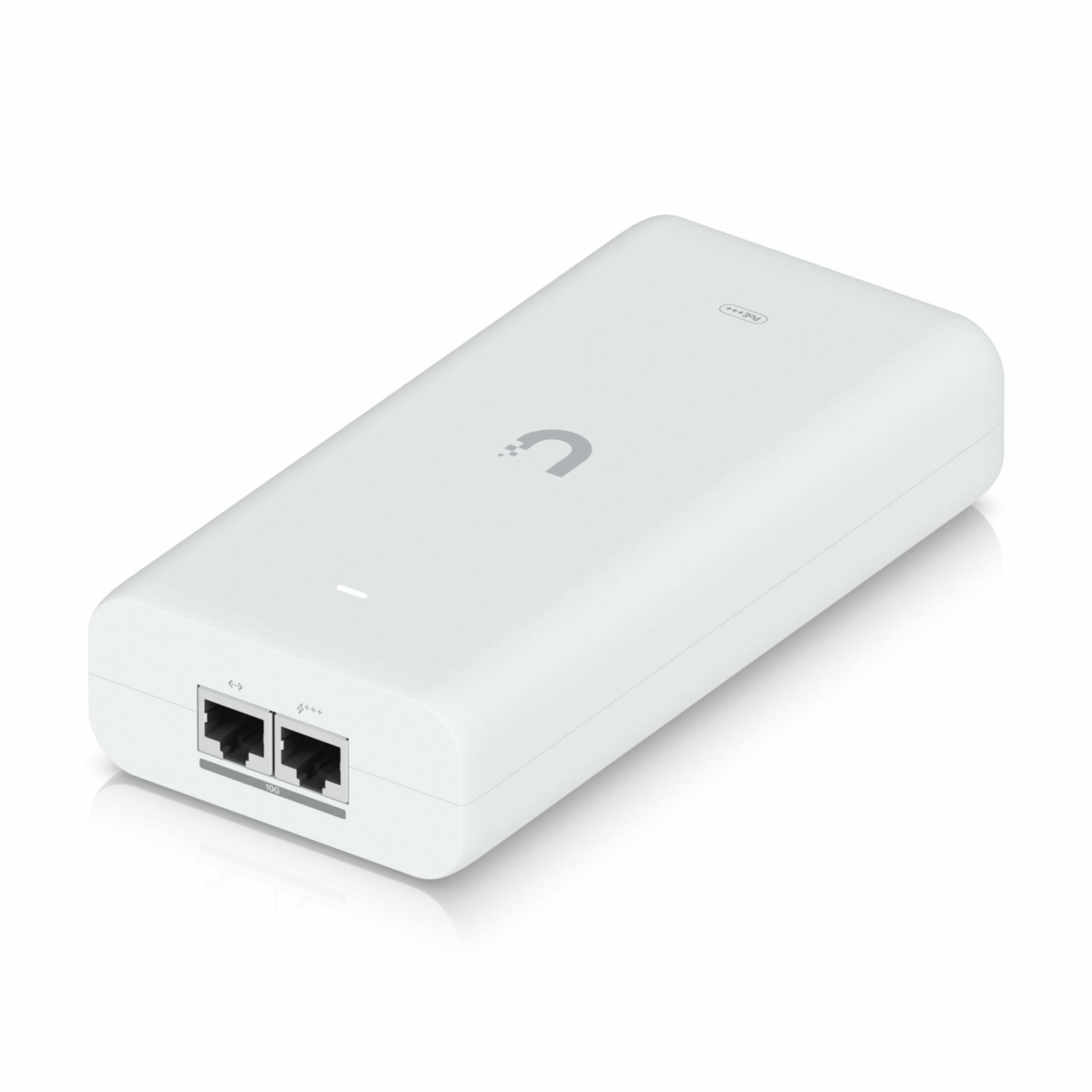 Ubiquiti UACC-PoE+++-10G (UniFi 10G PoE+++ adapter 90W) je profesionalni PoE injektor, ki omogoča izhodno napetost 48V DC pri 0.65A in zagotavlja tako napajanje kot prenos podatkov s polno hitrostjo 10 Gb/s. Zmožnost zagotavljanja moči do 30 W ga naredi idealnega za napajanje naprav, kot so dostopne točke Wi-Fi 6E/7, PTZ kamere in omrežna stikala.