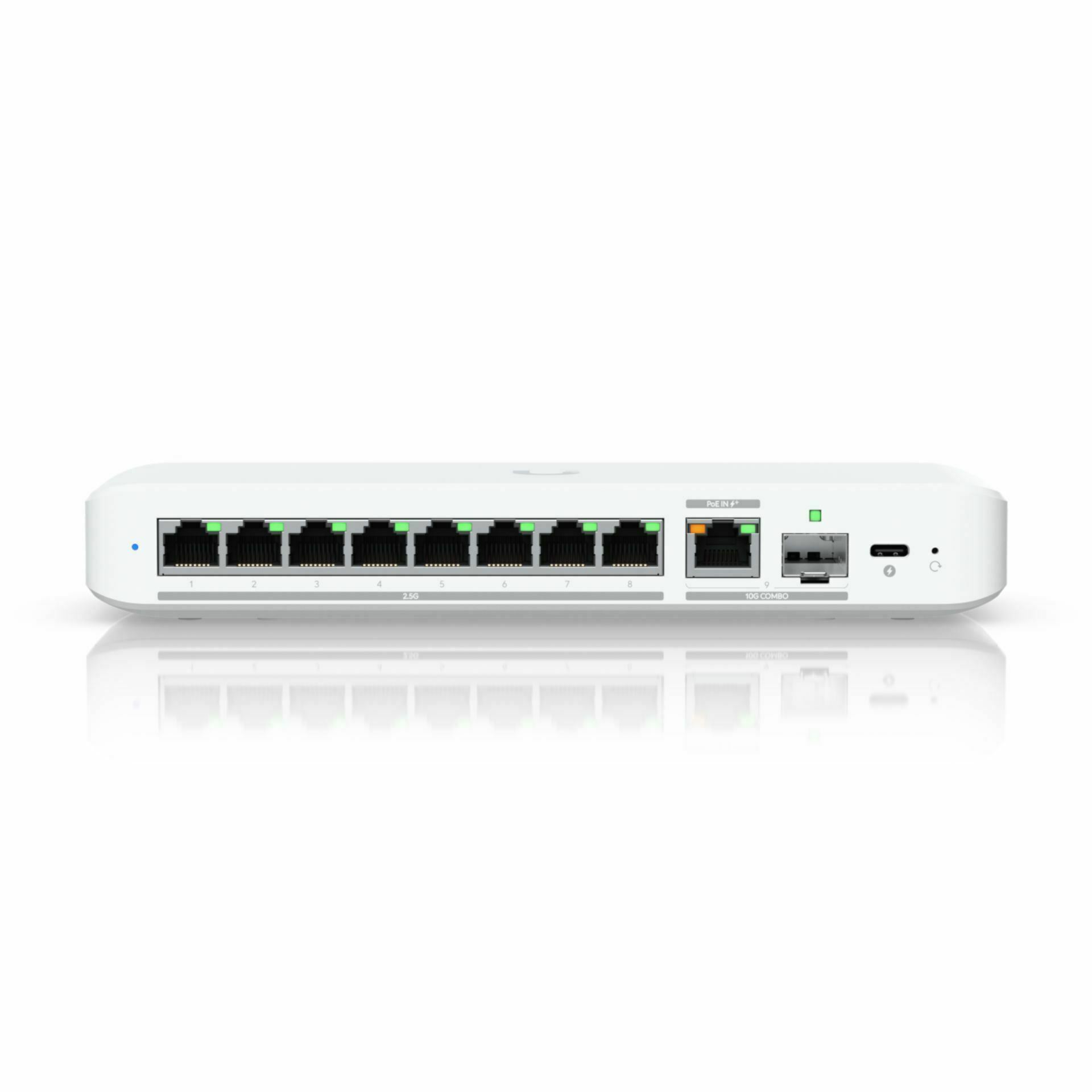 Ubiquiti USW-Flex-2.5G-8 je 8-portni 2.5 GbE stikalo s kombiniranim 10 GbE RJ45/SFP+ uplink priključkom. Napaja se prek PoE+ ali DC adapterja (opcijsko). Omogoča visoko hitrost povezovanja in prilagodljivo namestitev.
