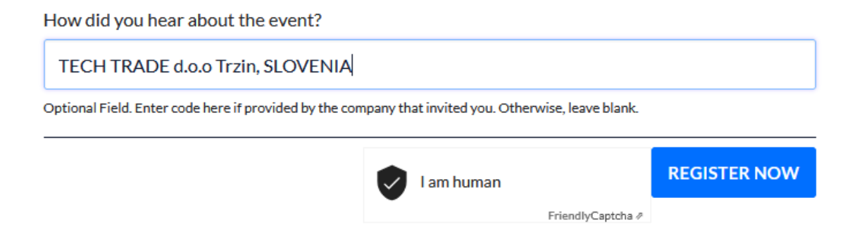 Opomba: Pri izpolnjevanju prijavnice v polju "Kako ste izvedeli za dogodek?" prosim navedite: TECH TRADE d.o.o Trzin, SLOVENIA