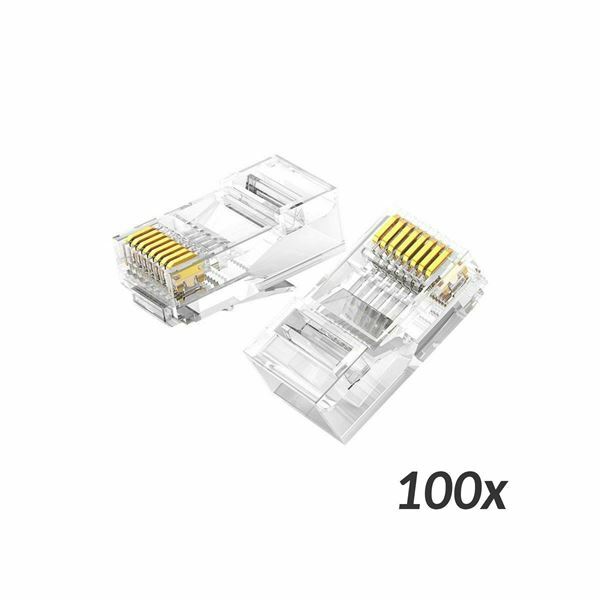 Ugreen RJ45 8P8C CAT.6 UTP so kakovostni konektorji pakirani v setu 100 kosov. Zasnovani so za ustvarjanje zanesljivih in hitrih omrežnih povezav. S svojo transparentno zasnovo omogočajo enostavno vizualno kontrolo pravilnega priklopa žic, kar olajša delo in zagotavlja brezhibno povezavo.