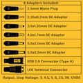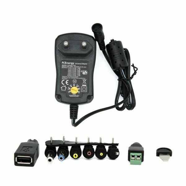 Paket vsebuje: 1x Univerzalni napajalnik. 1x Set različnih standardnih napajalnih vtikačev, 1x Navodila