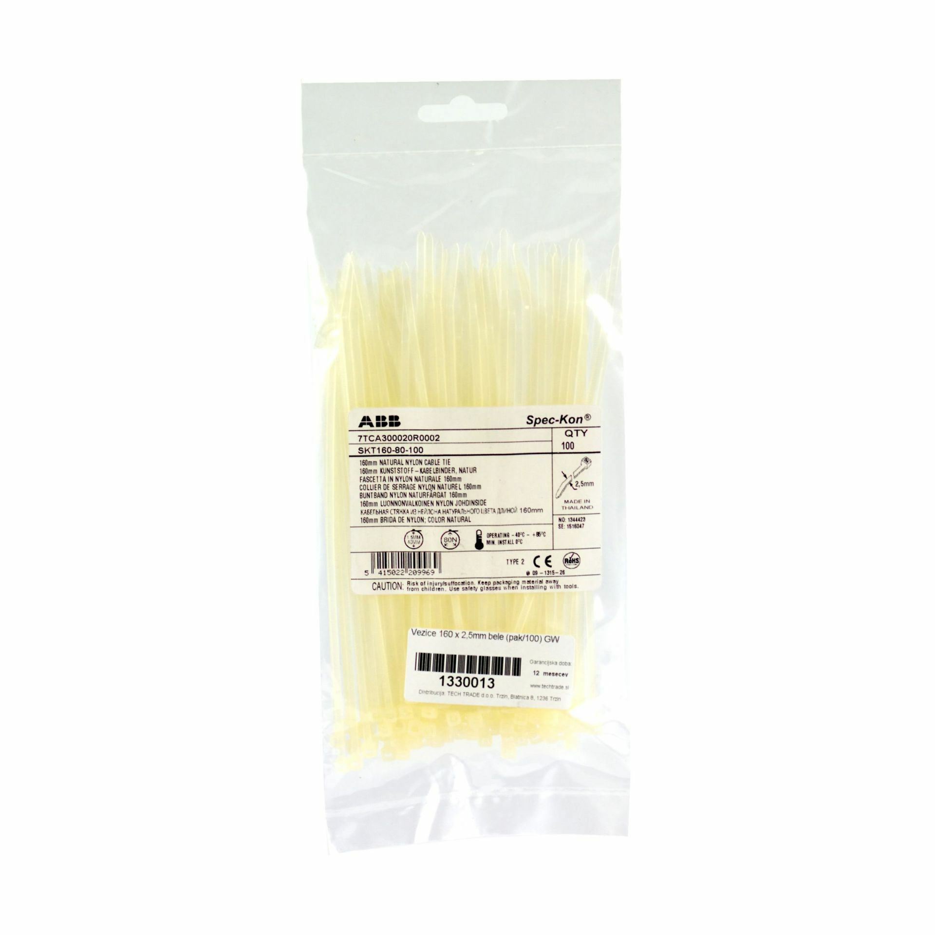GW vezice za povezovanje in urejanje kablov. V dolžini 160mm in širini 2,5mm, so iz plastičnega materiala in pakirane po 100 kosov. Vezica je bele barve odporna na UV svetlobo in ne vsebuje halogenske in silikonske snovi…