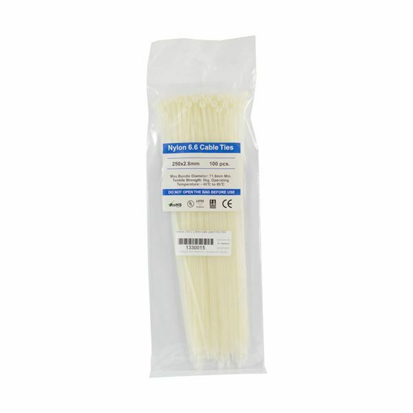 GW vezice za povezovanje in urejanje kablov. V dolžini 250mm in širini 2,8mm, so iz plastičnega materiala in pakirane po 100 kosov. Vezica je bele barve odporna na UV svetlobo in ne vsebuje halogenske in silikonske snovi…
