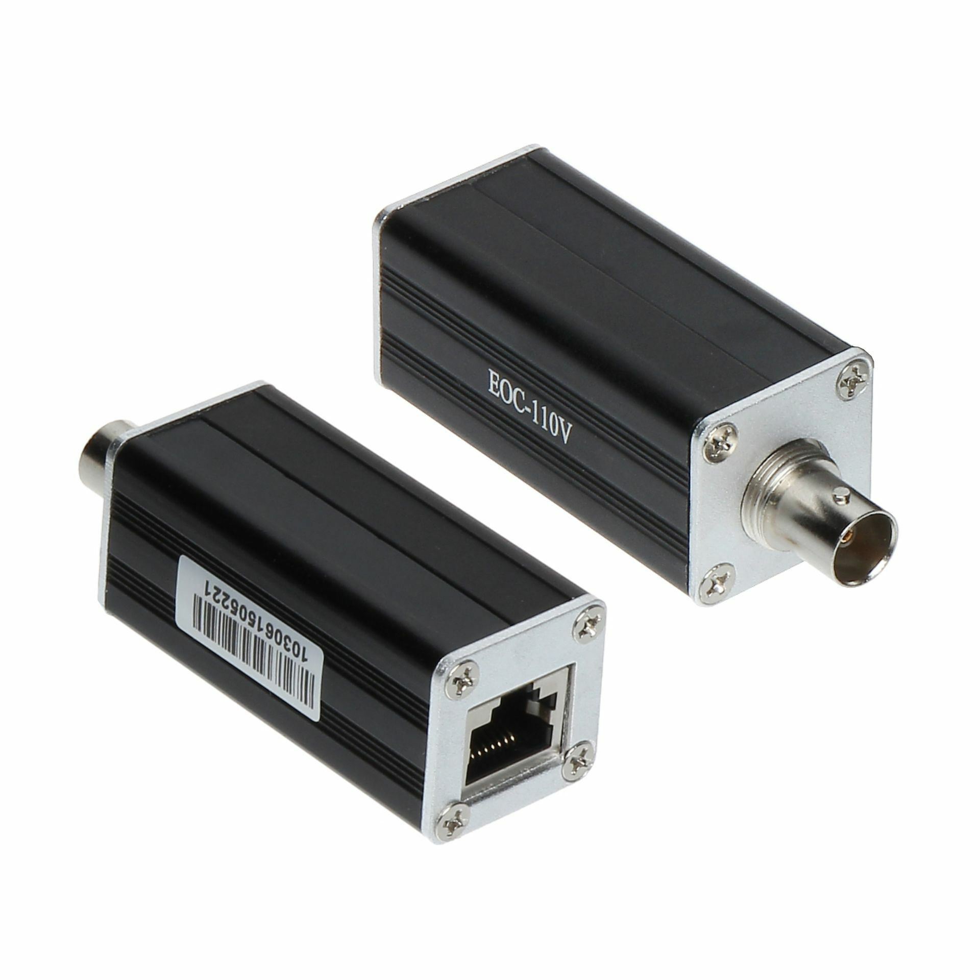 EOC-110KIT je pretvornik za prenos omrežnega signala prek koaksialnega kabla, primeren za povezovanje IP kamer in drugih omrežnih naprav. Enota z RJ45 in BNC priklopom omogoča Plug and Play uporabo ter do 200 m dosega po RG6 kablu. Patch kabli med napravami in pretvornikom morajo biti krajši od 1 m.