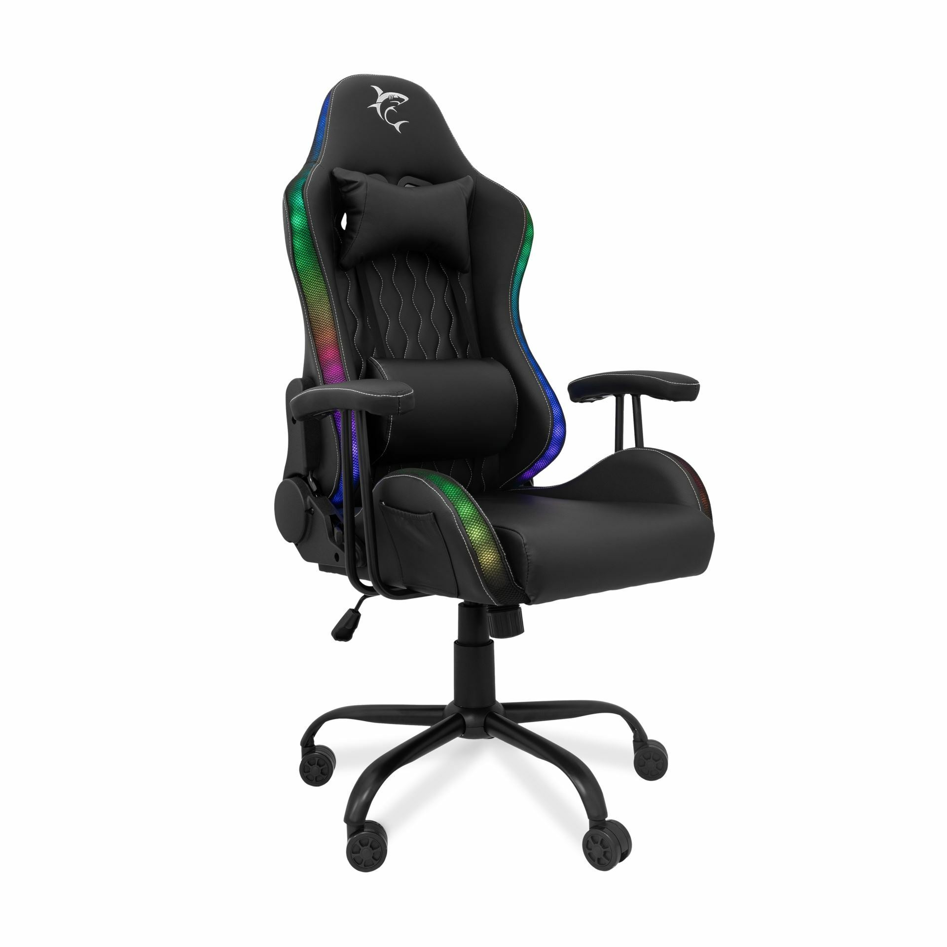 White Shark gaming stol v elegantni črni barvi združuje udobje in funkcionalnost. Nastavljiv kot in zaklep nagiba omogočata prilagodljivost med 90° in 180° za popolno udobje med igranjem. Poleg tega stol vključuje tudi barvno LED osvetlitev, ki dodajo estetski pridih in vzdušje vašemu prostoru.