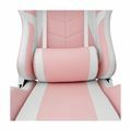 White Shark ROXY Gaming stol roza/bele barve omogoča daljši čas sedenja brez bolečin v hrbtu. Ob stolu dobite tudi mehki podloženi blazinici za vrat in križ. Višino sedenja lahko nastavite z zračno vzmetjo in majhnim ročajem na desni strani.