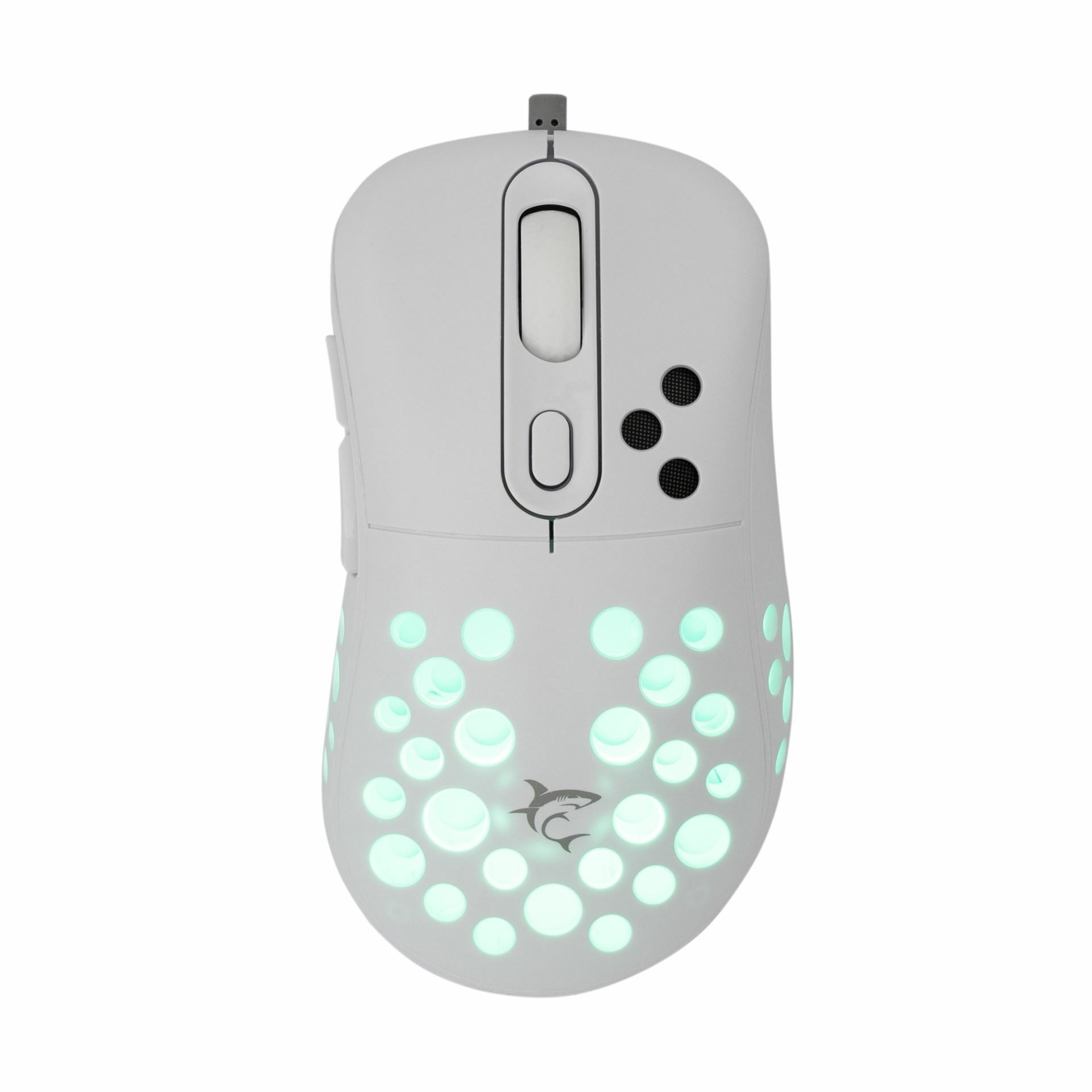 White shark miška v beli barvi združuje zmogljivost in stil. Optični senzor in čipset Instant 825 zagotavljata natančno sledenje in odzivnost. Z ločljivostjo DPI 7200 (12800 SW) ter pospeškom 20 G omogoča izjemno natančnost pri igranju in delu.