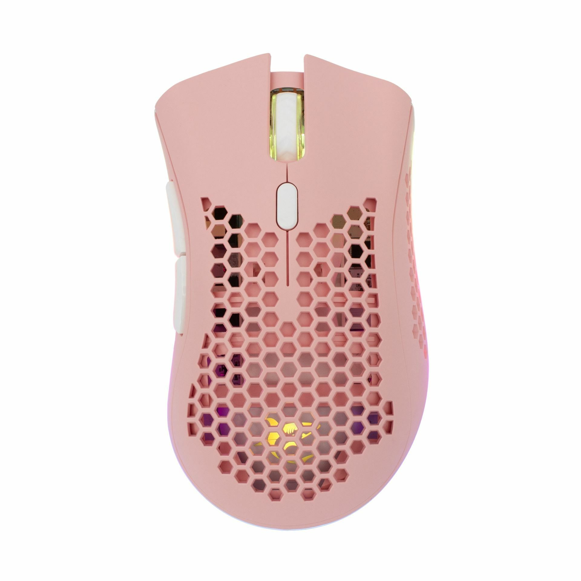 WHITE SHARK miška brezžična roza RGB WGM-5012 LIONEL Gaming ponuja visoko zmogljivost z optičnim senzorjem Pixart 3325, ločljivostjo do 10.000 DPI in 6 tipkami, vključno z RGB osvetlitvijo. Z življenjsko dobo 20 milijonov pritiskov. Poveže se preko USB 2.0 s pletenim kablom ter je združljiva z Windows in MacOS.