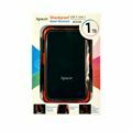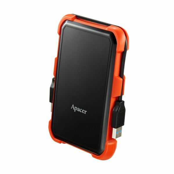 Apacer zunanji trdi disk z gumijastim okvirjem, odporen na udarce in padce (do višine 1.22m). Okvir je zasnovan tako, da omogoča prenašanje priključnega kabla za trdi disk, ko ta ni v uporabi.